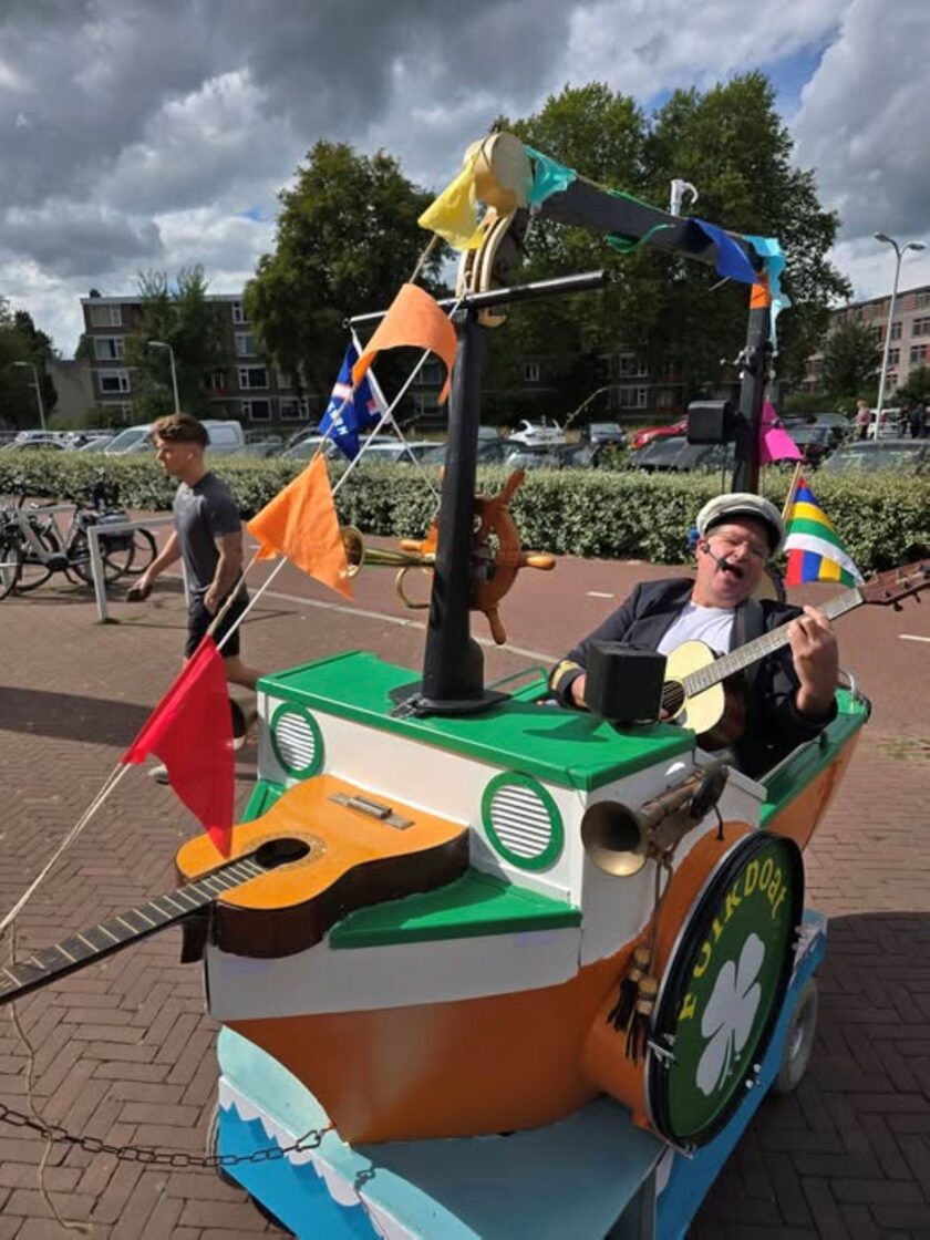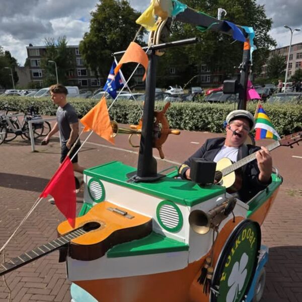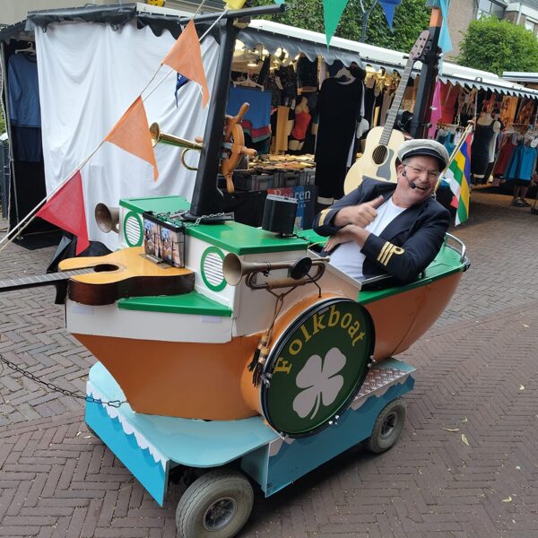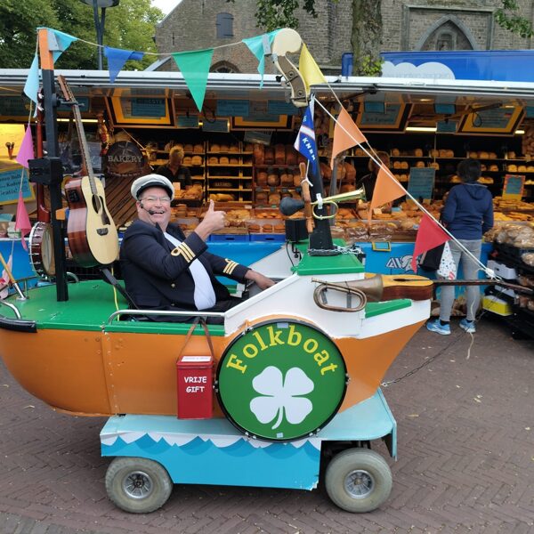 Live trompet, bugel, percussie en tevens enkele nummers met zang met als begeleiding een geluidsband. Dit al rijdend op een ouderwetse driewieler. Te reserveren in meer dan 20 verschillende thema's.